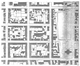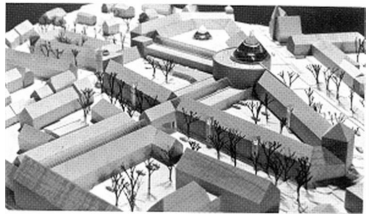 Fortætning af Esbjerg,konkuranceforslag fra 1984.Fortætning af den gamle bykerne i Esbjerg. Fortætning og omstrukturering af området. ”Gør byen til by igen”til en by til boliger og arbejdspladser.
